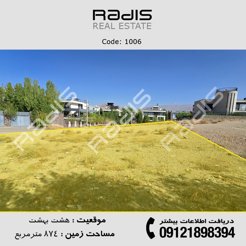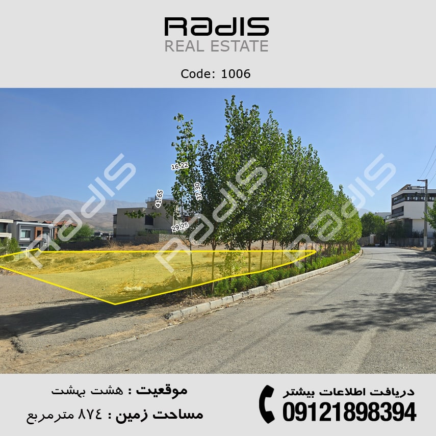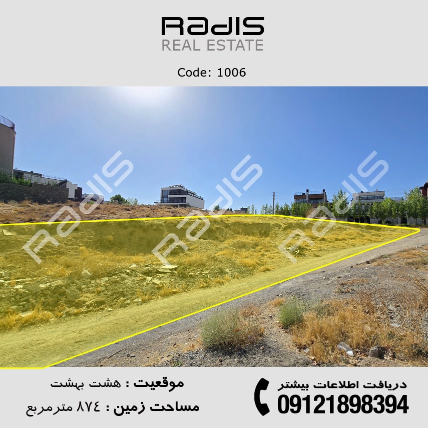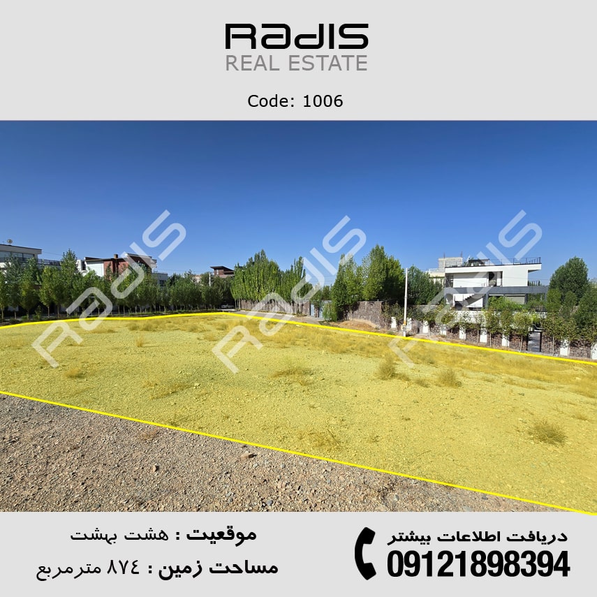 فروش زمین ویلایی در شهرک هشت بهشت | 874 متر مسکونی